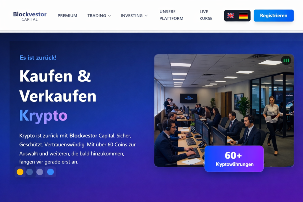 In den heutigen Finanzmärkten benötigen Investoren und Händler einen Partner, der jahrzehntelange Erfahrung mit modernster Technologie verbindet. Diese Blockvestor-Capital.com Bewertung wirft einen genaueren Blick auf Blockvestor Capital, eine hybride Brokerage-Firma, die traditionelle Finanzdienstleistungen mit dem Handel digitaler Vermögenswerte verbindet und sowohl privaten als auch institutionellen Investoren ein breites Spektrum an Tools und Dienstleistungen bietet.