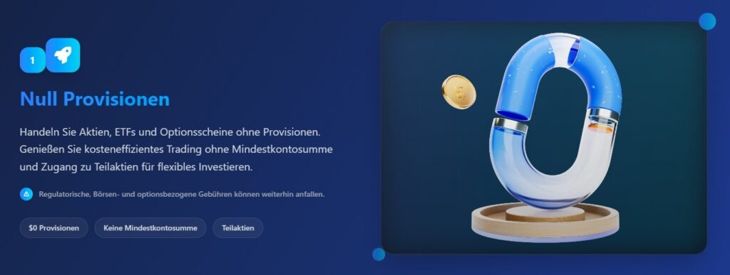 - Handel ohne Kommission: Handel von Aktien, ETFs und Optionen ohne Gebühren, einschließlich Bruchteilsanteile für flexibles Investieren.
